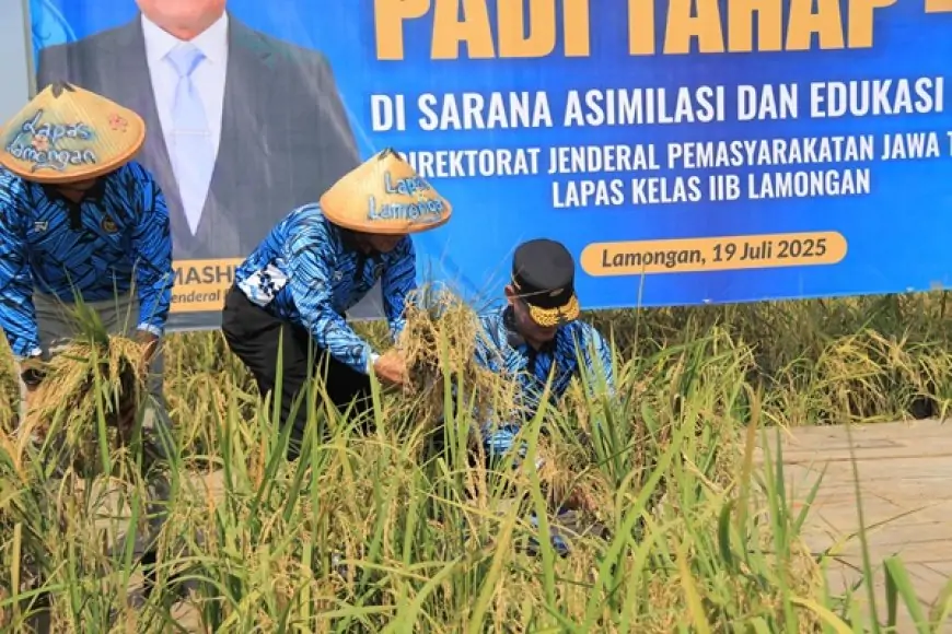 Lamongan, (afederasi.com) - Lapas Kelas IIB Lamongan kembali menunjukkan jati dirinya bukan sekadar tempat menjalani hukuman, melainkan ruang produktif yang memberi harapan. Melalui program Sarana Asimilasi dan Edukasi (SAE), Lapas Kelas IIB Lamongan menggelar panen raya padi varietas IR32 di lahan seluas 1,8 hektare, lengkap dengan panen ikan lele dan patin hasil budidaya warga binaan.