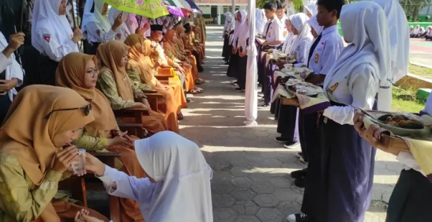 Setelah sungkeman, acara dilanjutkan dengan siswa menyuapi para guru, staf, dan karyawan sebagai simbol bakti dan kasih sayang.