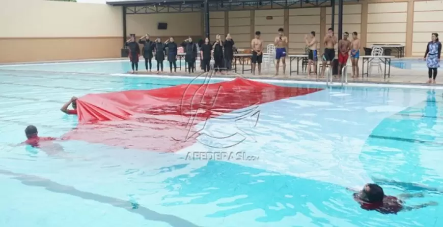Tepat pukul 09:30 WIB, ketika detik-detik proklamasi diperingati di Ibu Kota Negara (IKN), Kalimantan, 40 atlet dan pecinta olahraga renang membuat aksi spektakuler dengan membentangkan Bendera Merah Putih raksasa berukuran 5x10 meter di atas permukaan air.