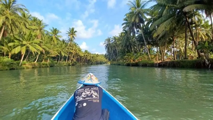 Aliran sungainya yang tenang dan pemandangan pepohonan kelapa di kanan kiri jalur perahu membuat suasana terasa sejuk dan alami.