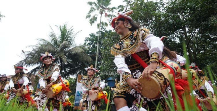 160 penari reog kendang dari siswa siswi tingkat SD/SMP mengiringi kirab budaya puncak peringatan hari jadi Kabupaten Tulungagung yang ke 817 (deny/afederasi.com)