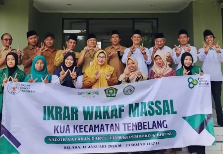 Jombang, (afederasi.com) – Kantor Urusan Agama (KUA) Kecamatan Tembelang, Kabupaten Jombang, menggelar ikrar wakaf massal di Pondok Pesantren Darul Ulum Kepuhdoko, Selasa (13/1/2026).